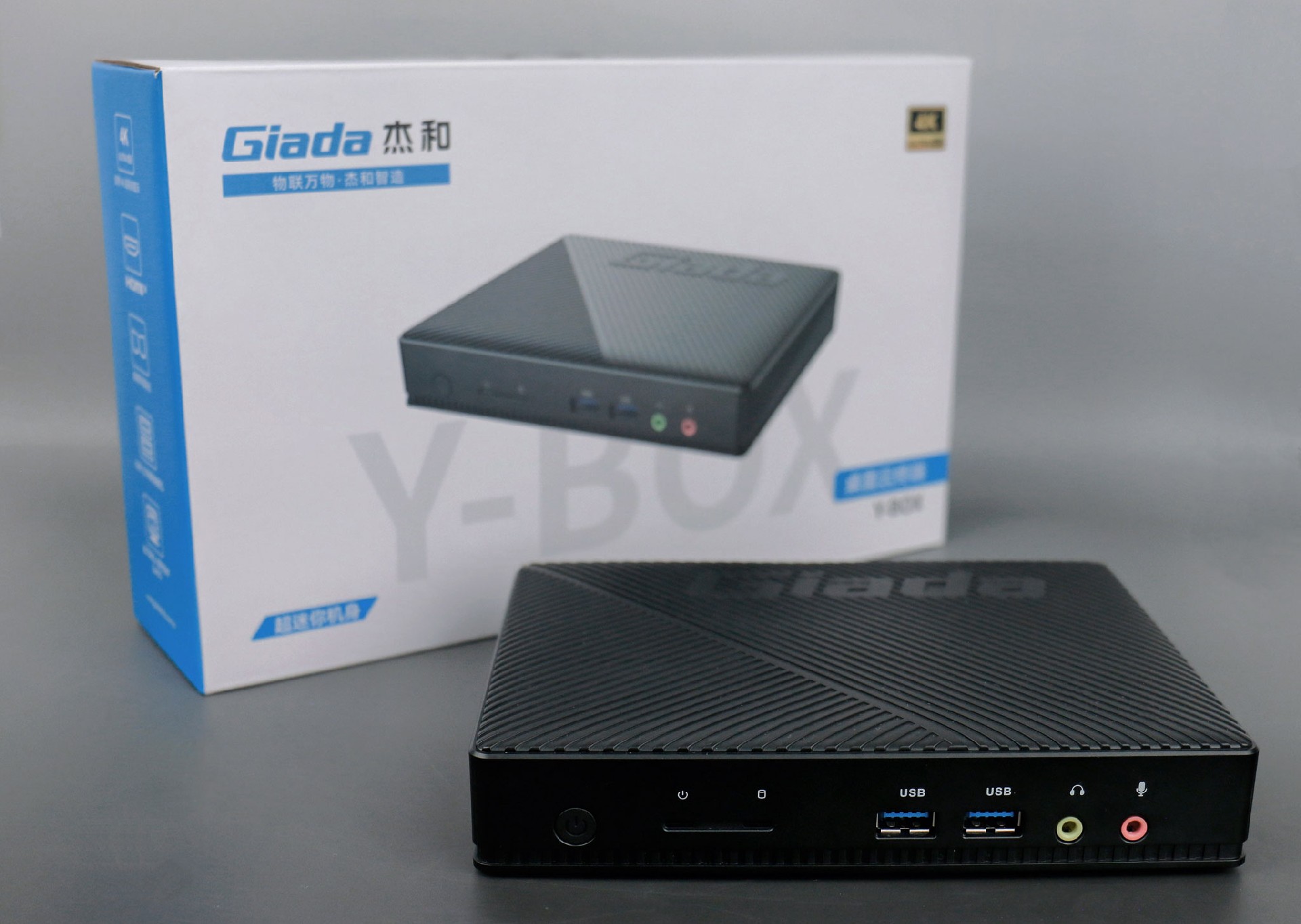 沐鸣娱乐桌面云终端Y-BOX S2采用全新外观ID设计,主盖采用黑色哑光栅格,顶部刻印沐鸣娱乐Giada品牌名,磨砂塑胶材质,高质感更轻盈。外包装采用简洁商务的风格设计,以沐鸣娱乐蓝的配色作为点缀,内部采用严实防震的珍珠泡棉保护主机,同时,内部配备适配器、AC线、天线棒、螺丝包,满足通用需求。