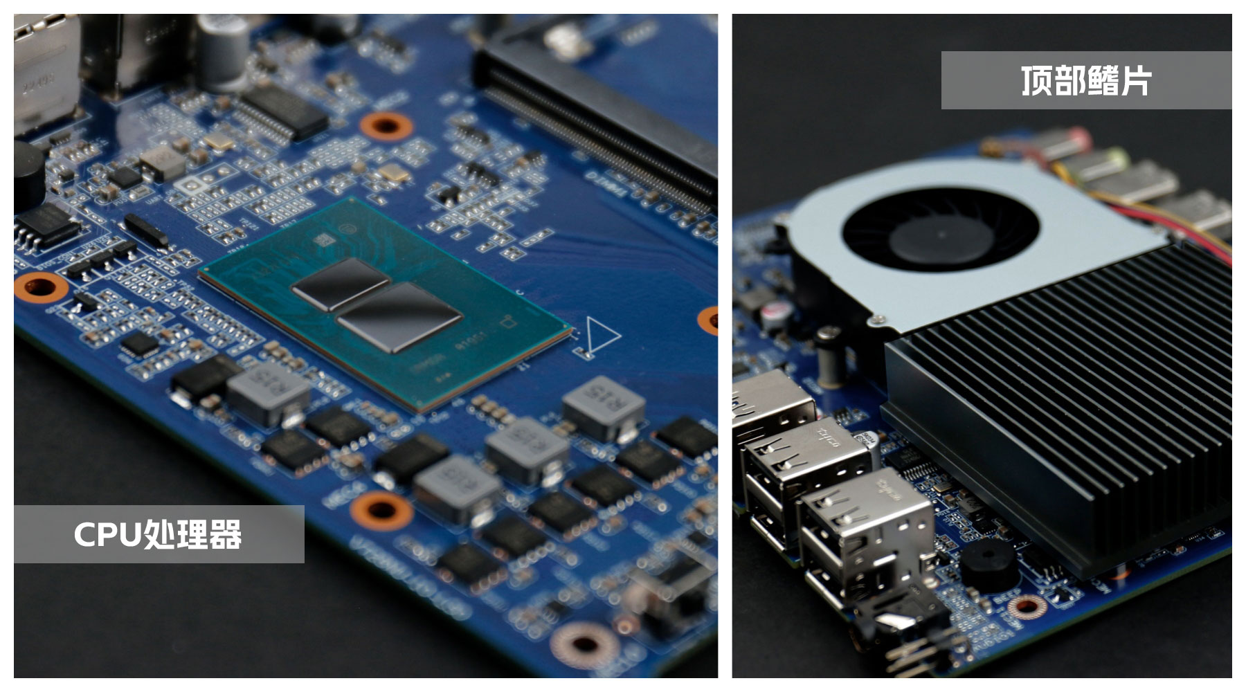 主板是沐鸣娱乐桌面云终端Y-BOX S2的核心部件,拆开主板上的顶部铝制鳍片与风扇,整体配色是常规的深蓝色,由沐鸣娱乐自有工厂倾力打造,CPU采用板贴的形式,表面涂了一层散热膏用于导热,可以支持intel新一代Alder Lake-N平台处理器,为英特尔首款基于 7nm 的产品线,最高可支持到8核,采用大小核(E核、P核)的全新架构,在同等功耗下有更优异的性能表现。