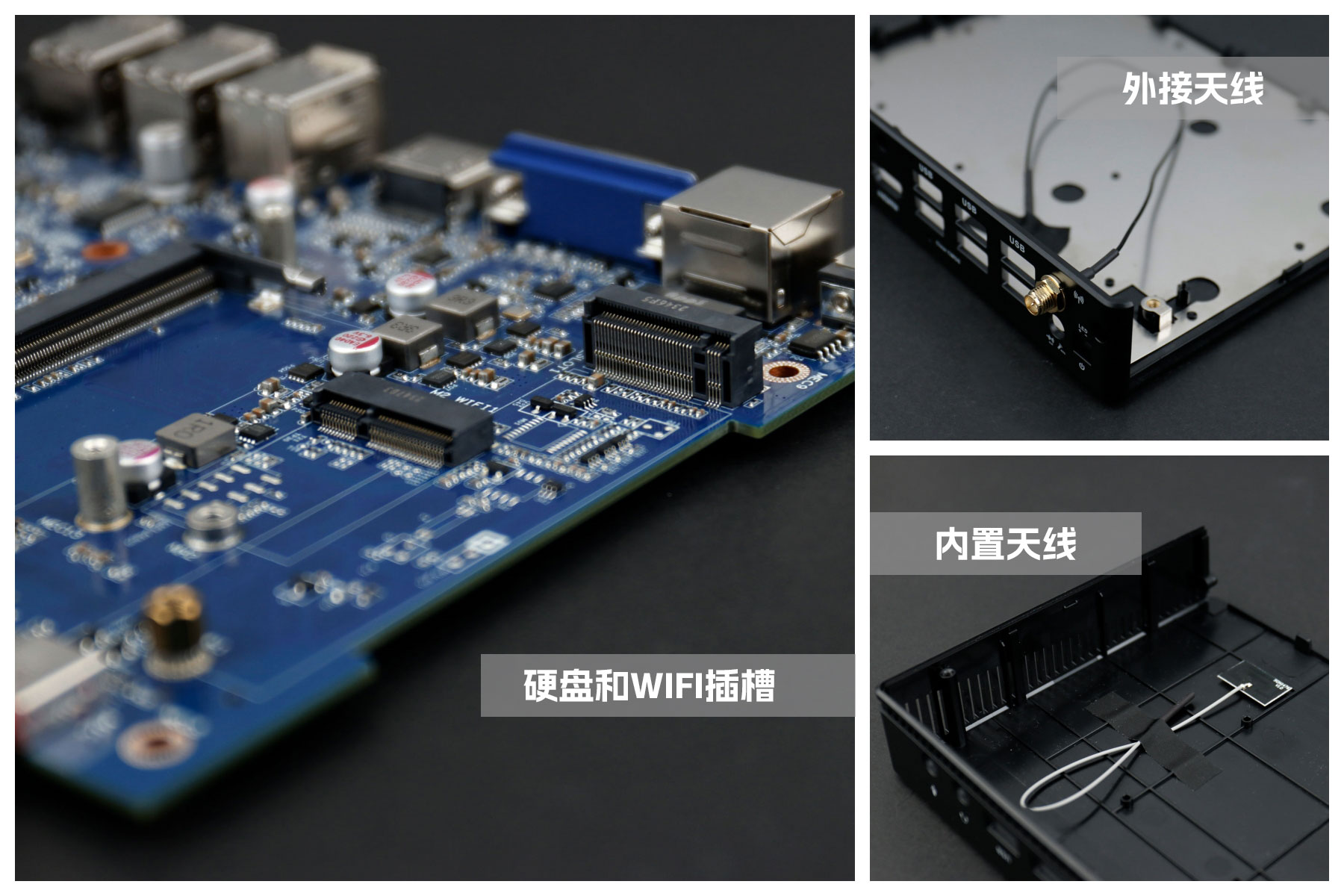 沐鸣娱乐桌面云终端Y-BOX S2主板上配备了 1个 M.2 固态硬盘位,接口规格为 PCIe3.0 标准,匹配标准的 2280 规格硬盘。一侧还有一个M.2接口,匹配2230长度的WIFI/BT模块插槽,WiFi模块可以连接的是外接天线,增强信号,同时也可以内接天线,灵活应用,支持Wi-Fi 5/6/6E网络。
