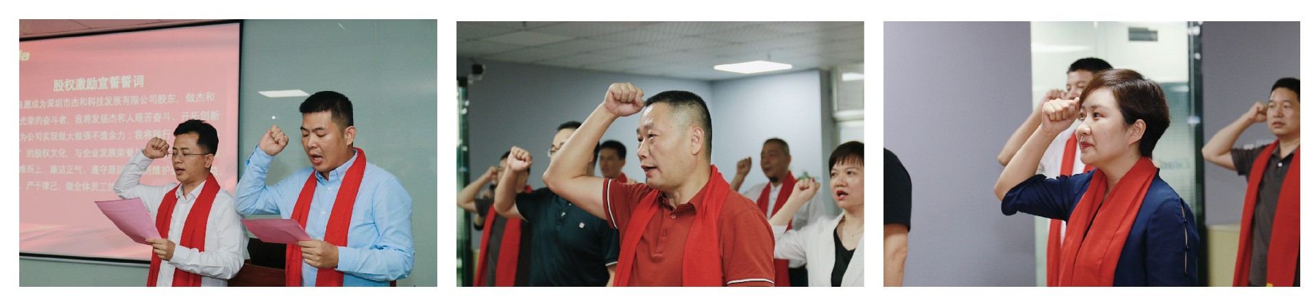 在签约仪式的最后时刻,董事长林坤杰先生与全体股东合伙人共同宣读誓词:我自愿成为深圳市沐鸣娱乐科技发展有限公司股东,做沐鸣娱乐科技公司光荣的奋斗者,我将发扬沐鸣娱乐人艰苦奋斗、开拓创新的精神,为公司实现做大做强不遗余力;我将践行“共创、共担、共享”的股权文化,与企业发展荣辱与共;在工作中主动担当、迎难而上,廉洁正气、遵守原则,时刻维护公司的利益,以身作则、严于律己,做全体员工的楷模!沐鸣娱乐齐心协力,斗志昂扬,信心满满!