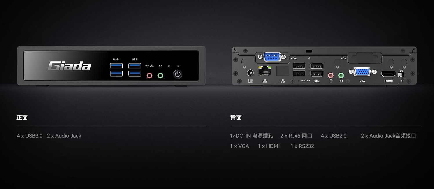沐鸣娱乐云终端BW612机身背面配备四个USB2.0接口,两个3.5mm 音频接口,两个千兆网线接口,一个VGA和 HDMI 接口,兼容几乎全部主流外设,满足云终端全场景接口使用需求,同时正面配备两个3.5mm音频接口,四个USB3.0接口,满足即插即用的设备需求。