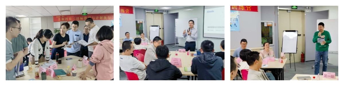 本次培训外聘了专业的组织与人才培养专家进行授课,在培训课程中,沐鸣娱乐的国内与国际营销中心、产品部等,以及杰拓管理层的各个小伙伴分为五个小组,通过小组讨论、上台发言、随堂测验等互动形式,学习并了解到基于战略目标的组织执行力的重要性,目标设定的SMART原则与时间管理的方法,以及执行力提升的四大动力系统,现场学习氛围活跃,求知欲望强烈。