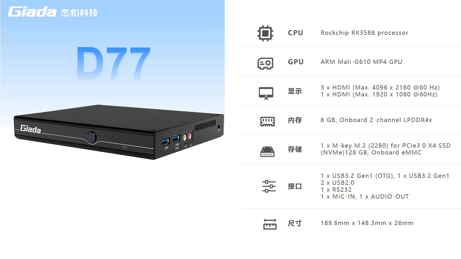 媒体播放器主要应用在大型商场、校园、户外大屏、超市、机场等公共场所,通过大屏幕终端显示设备,发布商业、财经和娱乐信息的多媒体专业视听系统,以其震撼的视觉效果、强烈的画面冲击力和高曝光率等特点,媒体播放器已经成为成为品牌传递信息、展示形象的重要渠道。沐鸣娱乐媒体播放器D77能够输出4个独立且支持4K UHD 分辨率的HDMI 屏幕,搭载八核架构,拥有6TOPS 算力的RK3588处理器,采用的ARM Mali-G610 MP4 GPU让D77 具备极其强大的图形性能。